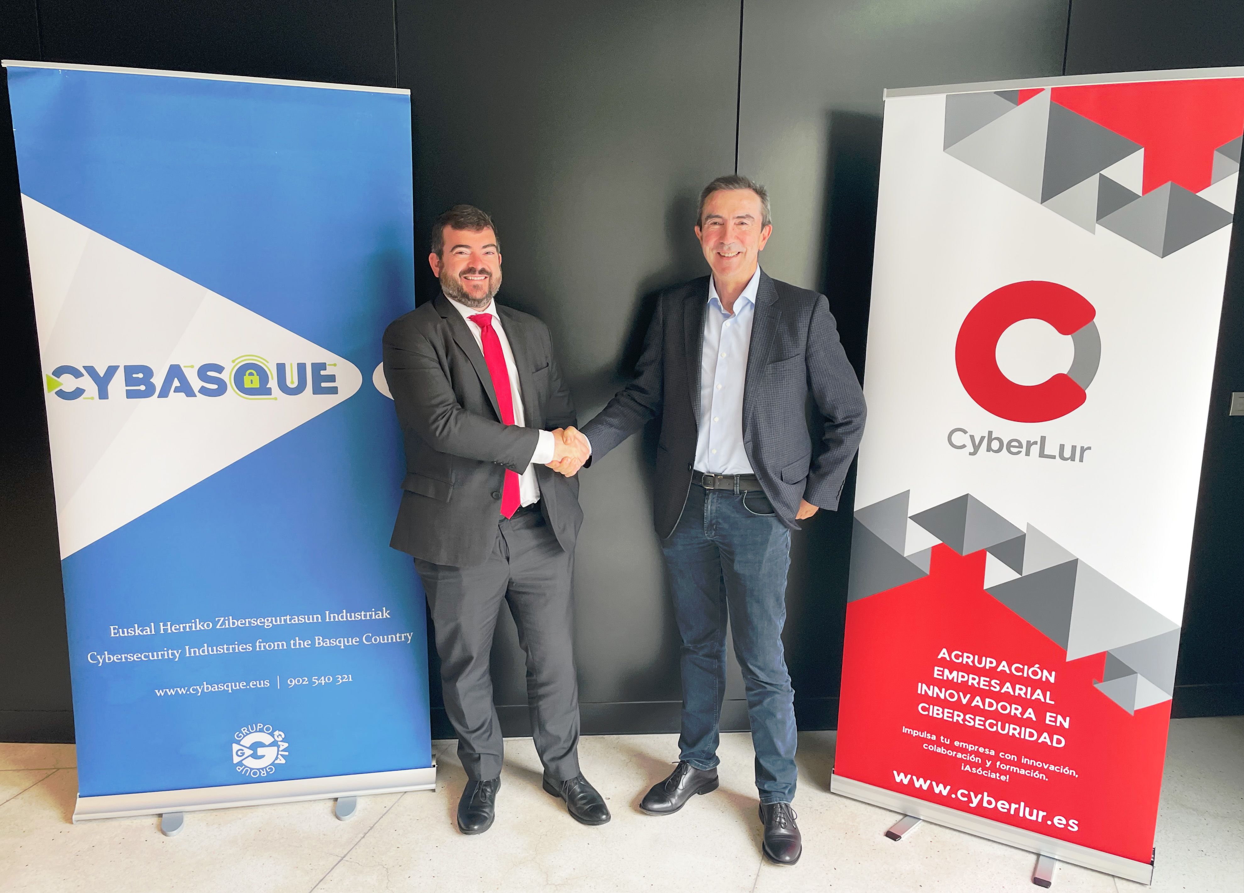 El presidente de Cyberlur, Xabier Mitxelena, y el vocal de Cybasque, Jesús Urien, han firmado un acuerdo de colaboración en representación de ambas asociaciones empresariales, que inician así una estrecha colaboración con el objetivo de afianzar el posicionamiento y liderazgo del sector de la ciberseguridad en Euskadi y España. El acuerdo entre ambas entidades se produce en un contexto de creciente digitalización y aumento de ciberamenazas, que hace imprescindible la colaboración entre empresas y organizaciones, públicas y privadas.