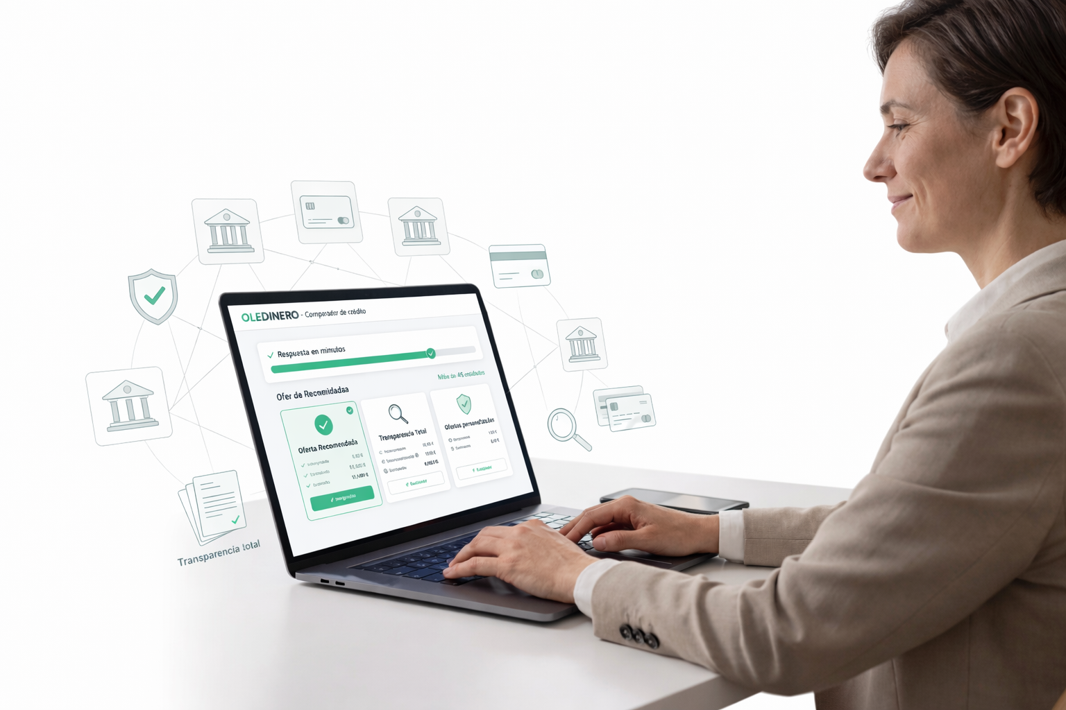 El verdadero valor de OLEDINERO reside en su potente función de intermediación. No se trata simplemente de un prestamista más, sino de un motor de búsqueda de financiación que abarca una red de más de 45 socios. Esta amplitud de opciones es lo que realmente confiere la facilidad financiera prometida.