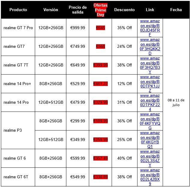 Aprovechar los descuentos del 8 al 11 de julio en Amazon y renovar el smartphone con la mejor tecnología a precios insuperables. Más información disponible en: https://www.amazon.es/stores/realme/page/9FDC92F8-76C2-4ED0-96EC-96A24C14F918